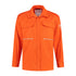 Blouse vlamvertragend antistatisch, 99% katoen / 1% antistatisch, 220 gram/m2, normeringen ISO11612 / ISO11611 en EN-11495-5, Verdekte drukknoopsluiting, 2 borstzakken met klep, manchetten met een verdekte drukknoopsluiting, reflecterende piping onder de borstzakken en rugplooien.