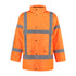 100% Oxford polyester, 200 gram, PU coated, verdekte YKK ritssluiting met drukknoop, 2 voorzakken met klep, binnenzak met klittenband, borstzak met ritssluiting, verdekte capuchon in de kraag. Voorzien van vaste stepvoering.
