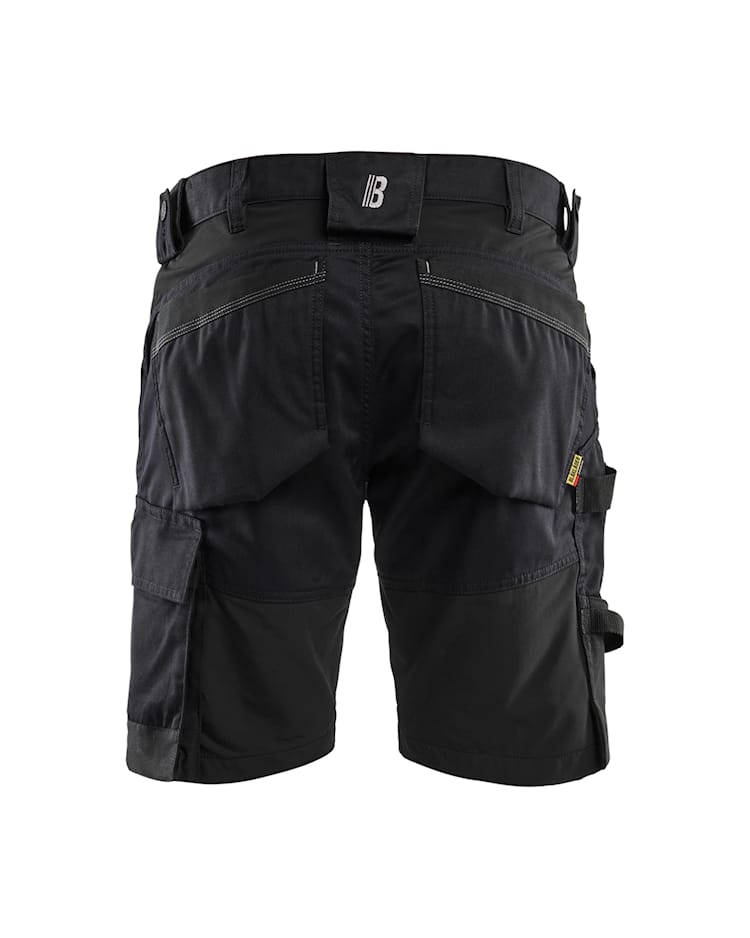 De short heeft praktische versterkte zakken, een duimstokzak, voorzakken en een lus voor een hamerhouder aan zowel de linker- als de rechterkant.