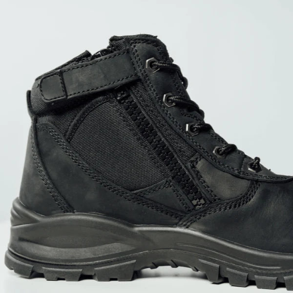 De hoge schacht beschermt je enkels en geeft meer stabiliteit. En dankzij de rits trek je ‘m supermakkelijk aan zonder dat je hoeft te worstelen met veters.