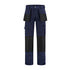 Werkbroek polyester/katoen, 65% polyester / 35% katoen, 260 gram/m2, 2 zijzakken, 2 loshangende voorzakken met Oxford versteviging welke weg te vouwen zijn in de broekzak, 2 afsluitbare achterzakken, ritssluiting, riemlussen, dijbeenzak met klittenbandsluiting, telefoonzak, duimstokzak, rolmaatzak, Oxford kniezakken.