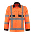 80% polyester / 20% katoen, 280 grams, drukknoopsluiting, 2 afsluitbare borstzakken waarvan 1 met ritssluiting, 2 zijzakken, pennenzakje op de mouw.